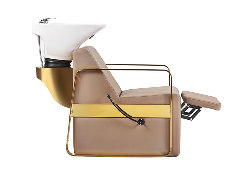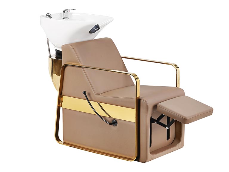 Stylish backwash with includes an adjustable basin with mixer tap and shower head, as well as a built in leg rest for maximum comfort.